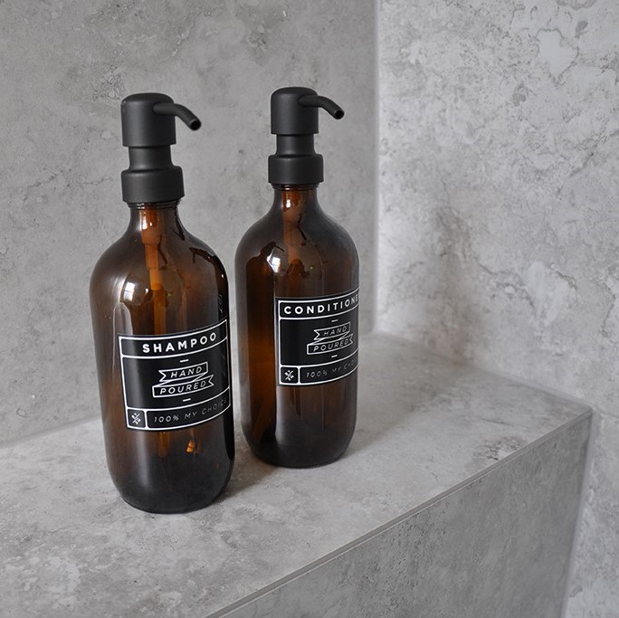To compliment your bottles and jars we have an extensive range of designer decals to label you products. The labels are waterproof so will last and last in the shower and since they are made from static cling material they easily peel off without any sticky residue and can be reapplied again and again – great for washing you bottles between refills or when swapping products. Shop the range in the ByMe store.